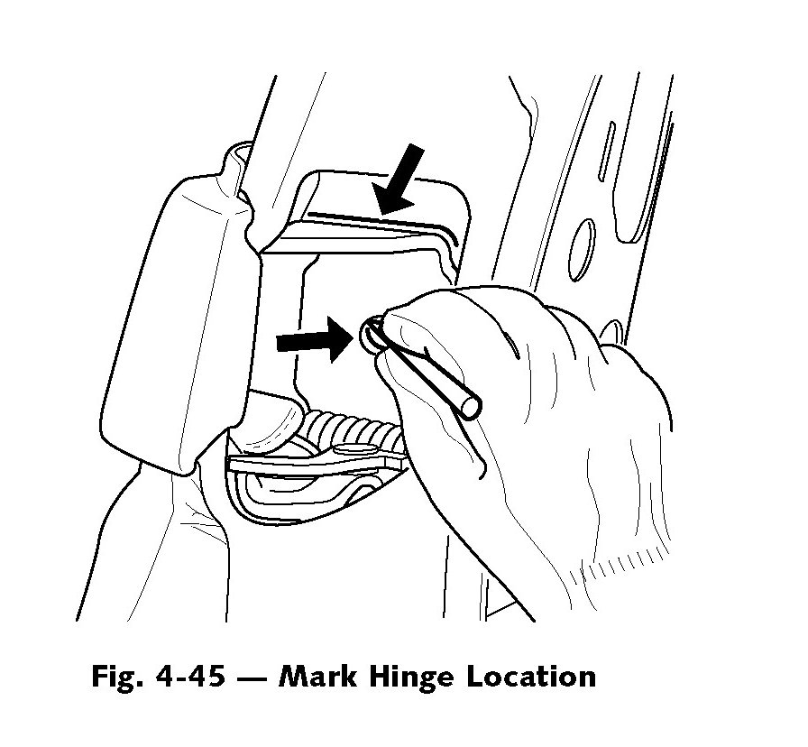 4. Scribe the location of the hinge on the hinge pillar (Fig. 4-45).
