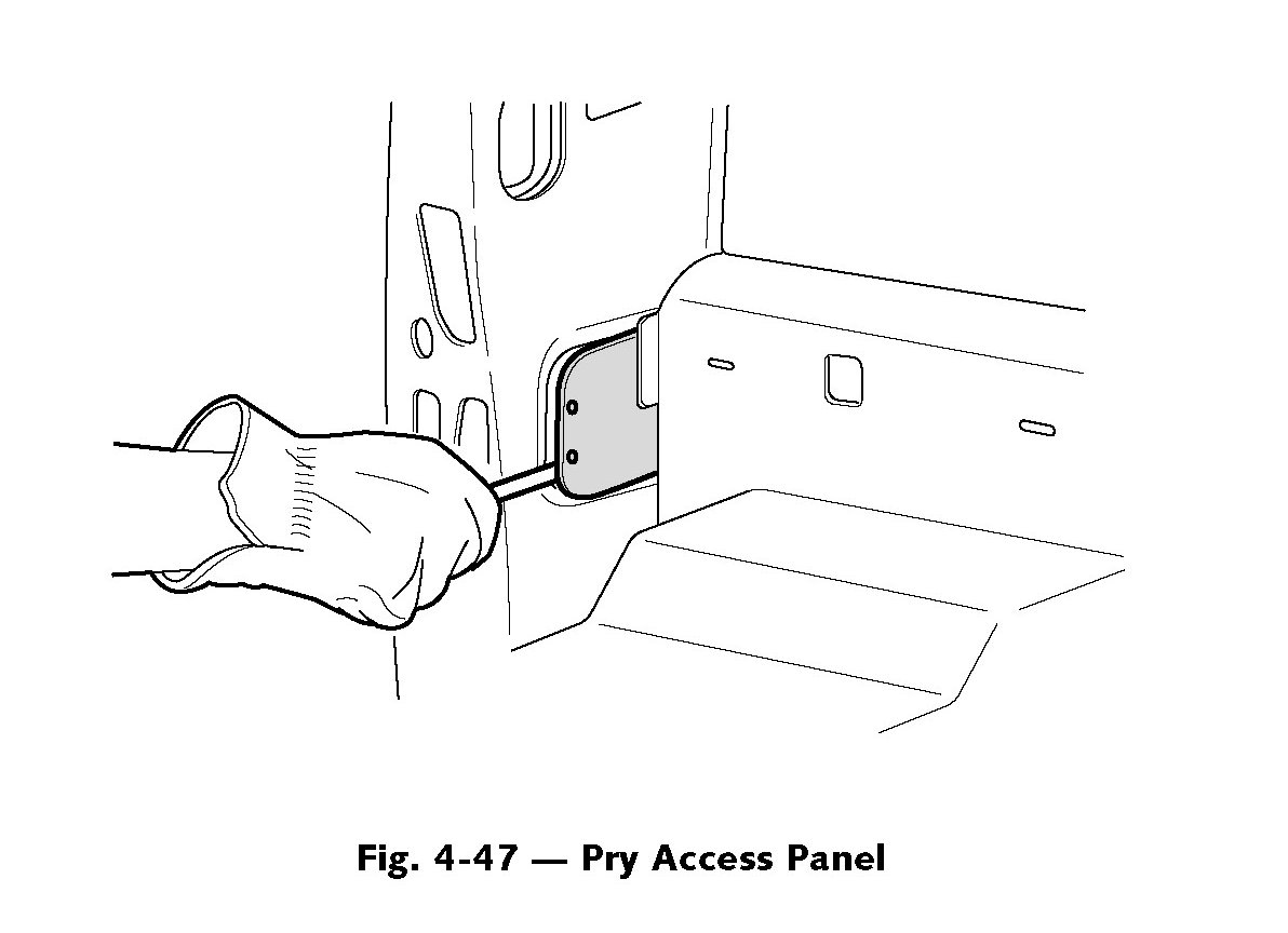 6. Pry access door out to gain access to the back side of the hinge (Fig. 4-47).