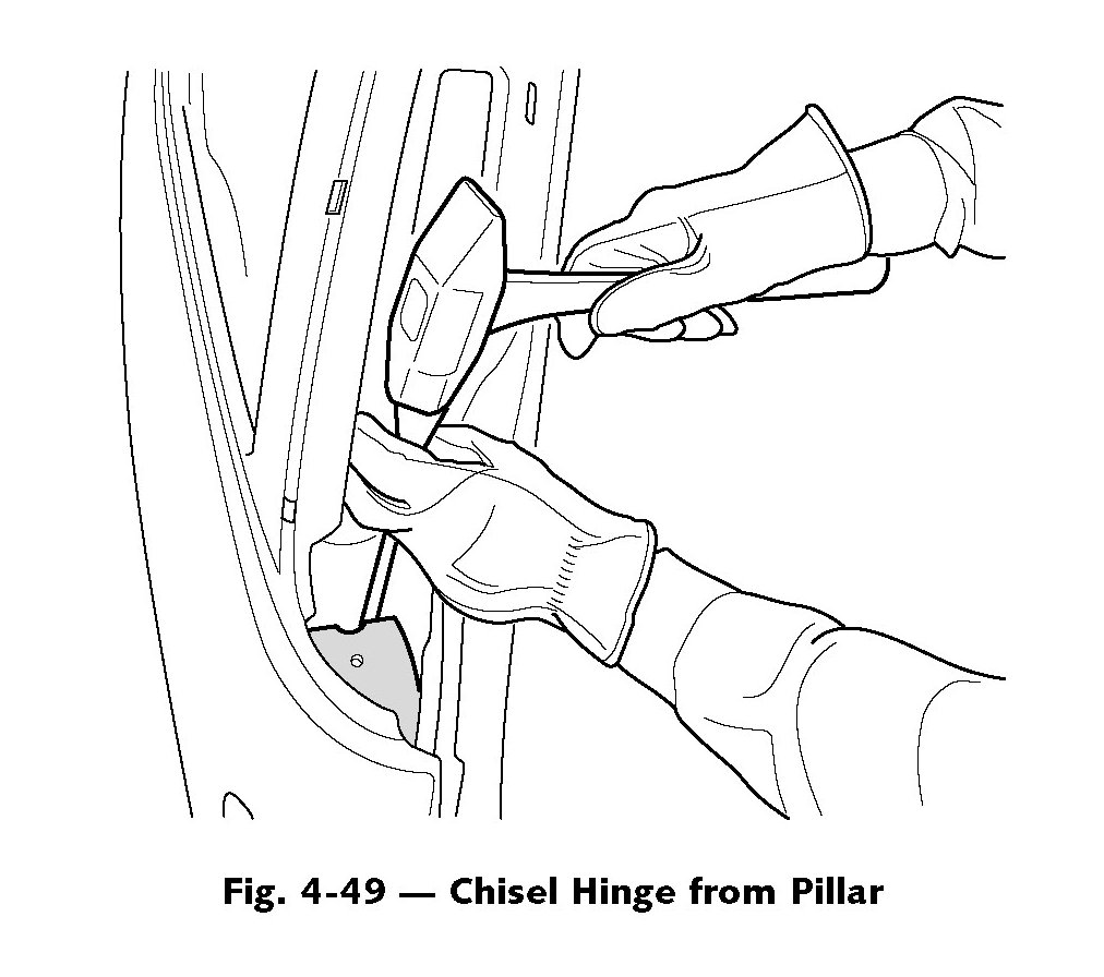 8. If necessary, use a chisel in order to separate the hinge from the pillar (Fig. 4-49).