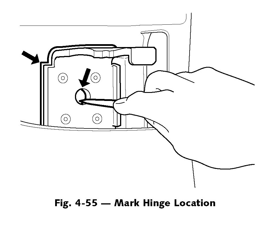 4. Scribe the location of the hinge on the hinge pillar (Fig. 4-55).