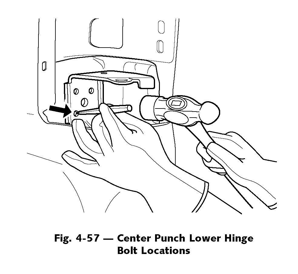 6. Center punch each of the four weld marks on the original hinge (Fig. 4-57).