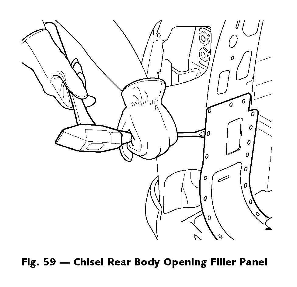 8. Remove rear body opening lower filler. If necessary, use a chisel in order to separate the filler from the opening (Fig. 4-59).