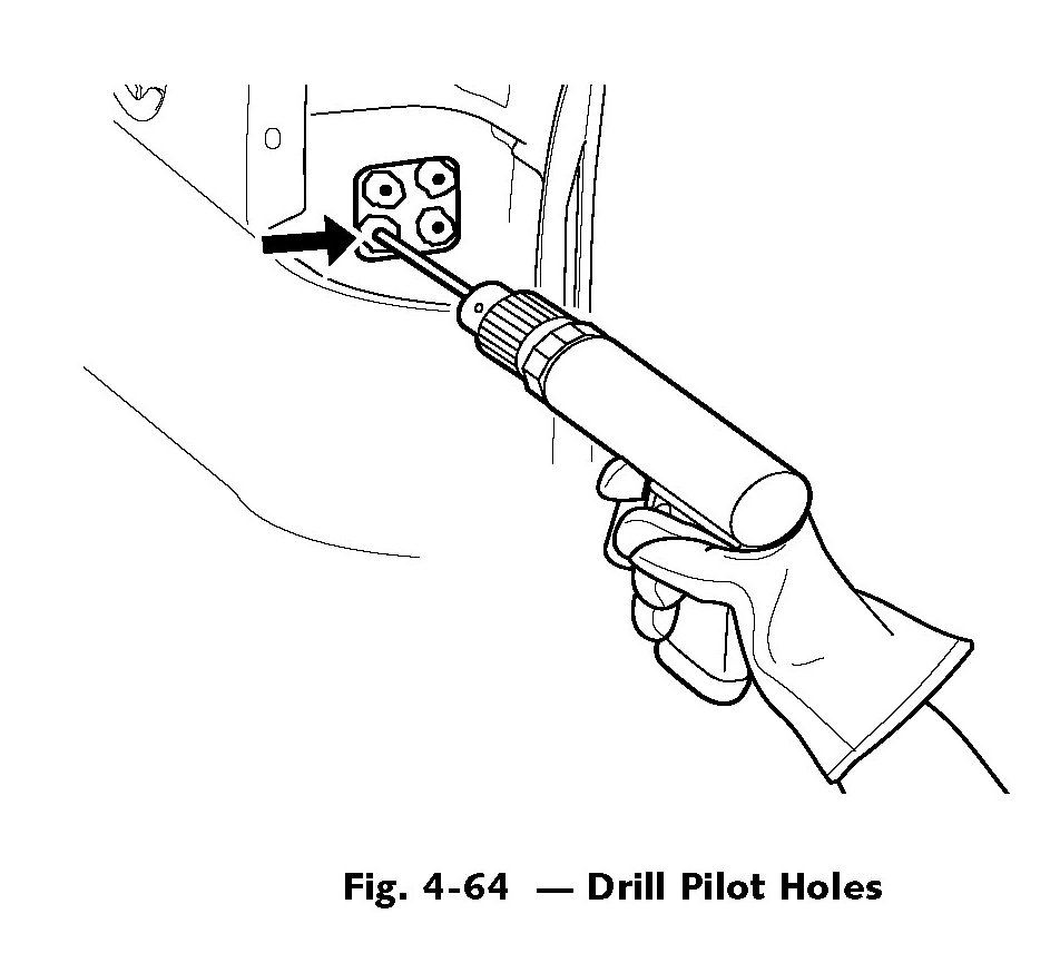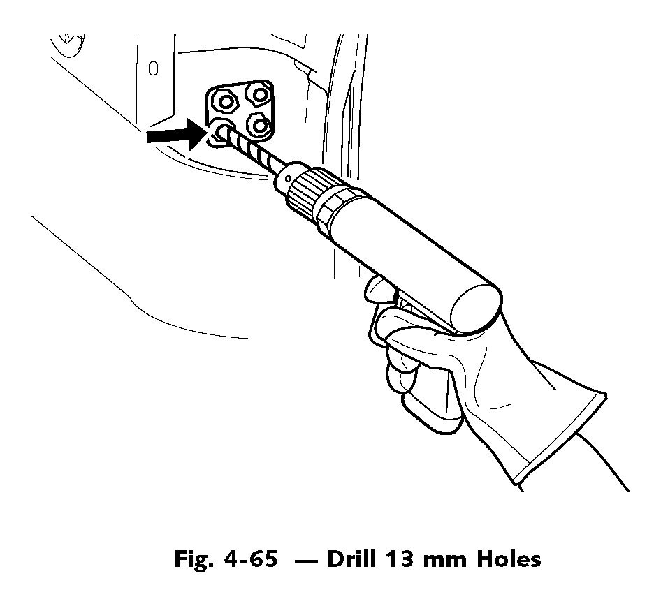 5. Drill a 13 mm (1/2 in) hole at the pilot locations (Fig. 4-65).