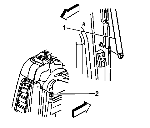 2. Push on the end of the strut in order to install the upper end of the liftgate strut (2) to the ball stud of the liftgate.