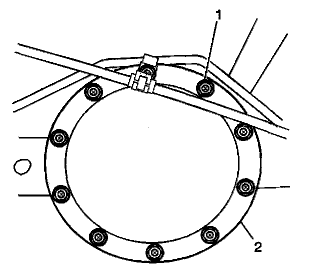6. Remove the rear axle housing cover (2) from the axle housing.