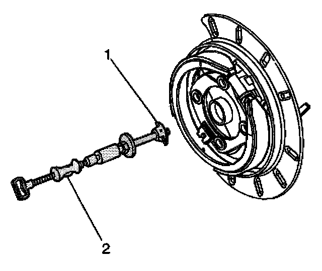 22. Remove the axle shaft seal and the bearing from the axle shaft tube using the J 44685 (1) and the J 2619-01 (2).