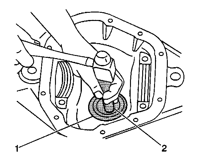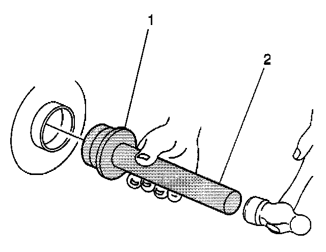1. Install the outer pinion bearing cup using the J 8611-01 (2) and the J 8092 (1).