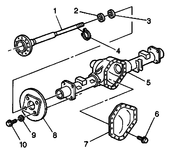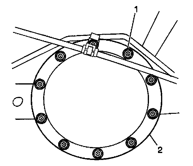31. Slide the axle shaft (1) into place allowing the splines to engage the differential side gear.
