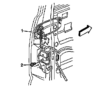 8. Remove the bolts (2) which retain the door lock actuator to the door.