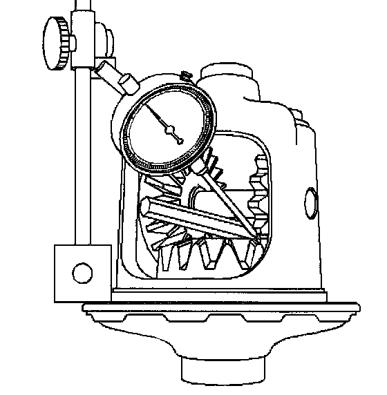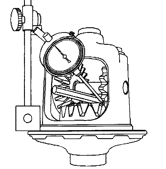 7. Measure the backlash of the pinion gear and the side gear by doing the following: