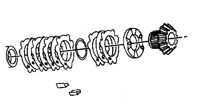 1. If it is necessary to replace the cam gear, the right hand side gear, or the reaction blocks, the entire differential must be adjusted. The differential is adjusted using selective thickness thrust washers behind each side gear, and the selective thickness thrust washers between the reaction blocks.