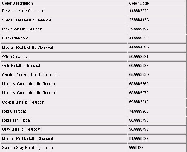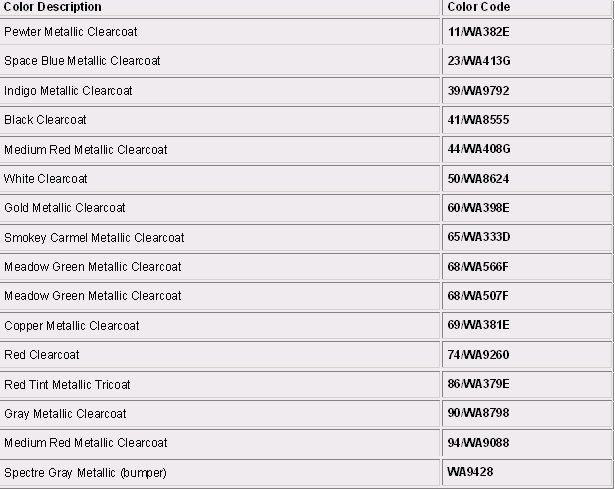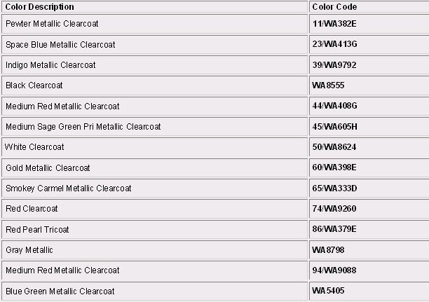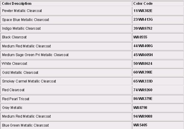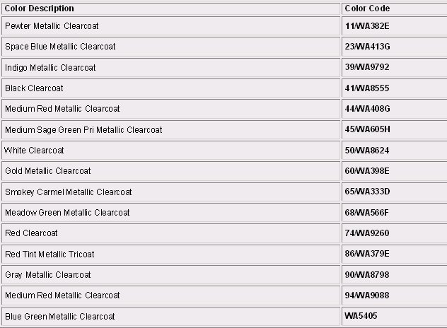 Paint Code Charts