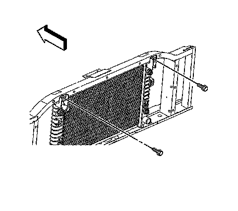9. Remove the radiator mounting bolts from the rear side of the tie bar.