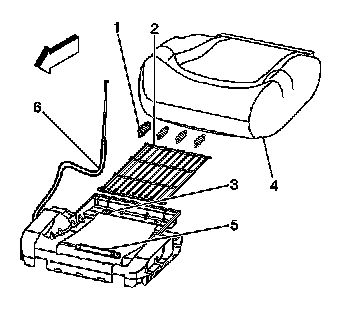 6. Disconnect the lumbar cable (6) from the lumbar actuator (5).