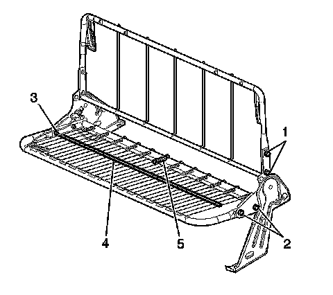 2. Release the J-clip on the rear of the seat cushion and pull back the trim cover far enough to expose the side bolts (2).