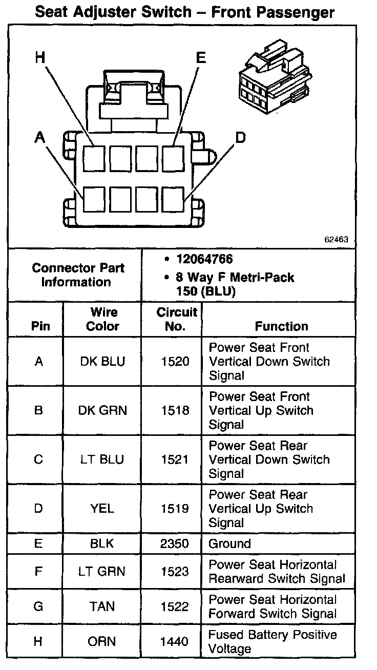 Seat Adjuster Switch - Front Passenger:
