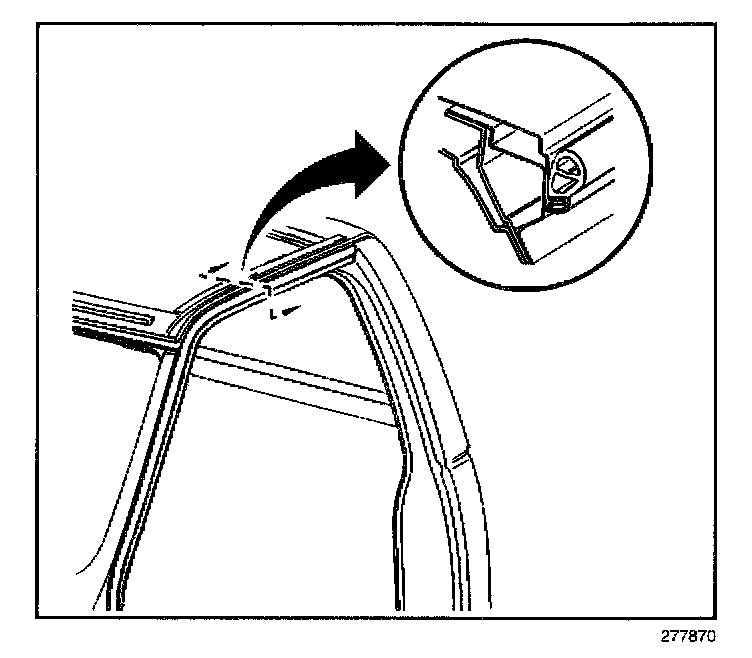 2. Pull the roof drip molding from the pinchweld and the windshield molding flange.