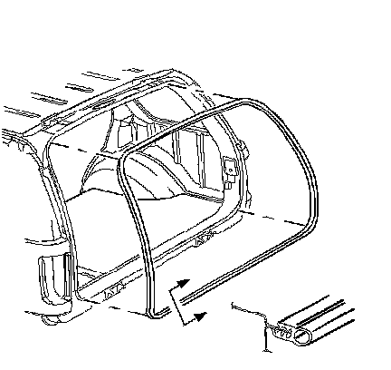2. Push the weather-strip onto the pinch weld flange, beginning from the top center of the endgate opening.