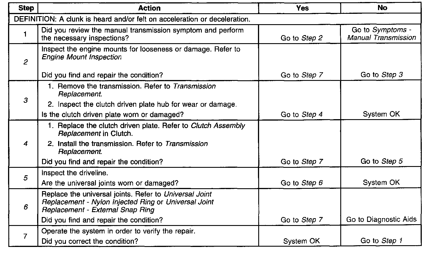 There are a few factors to know when there is a clunk in acceleration or deceleration. You should always check the engine mounts for looseness or damage. Also check the clutch driven plate to see if it is worn or damaged. Sometimes the clunk noise may come from worn or damaged universal joints.