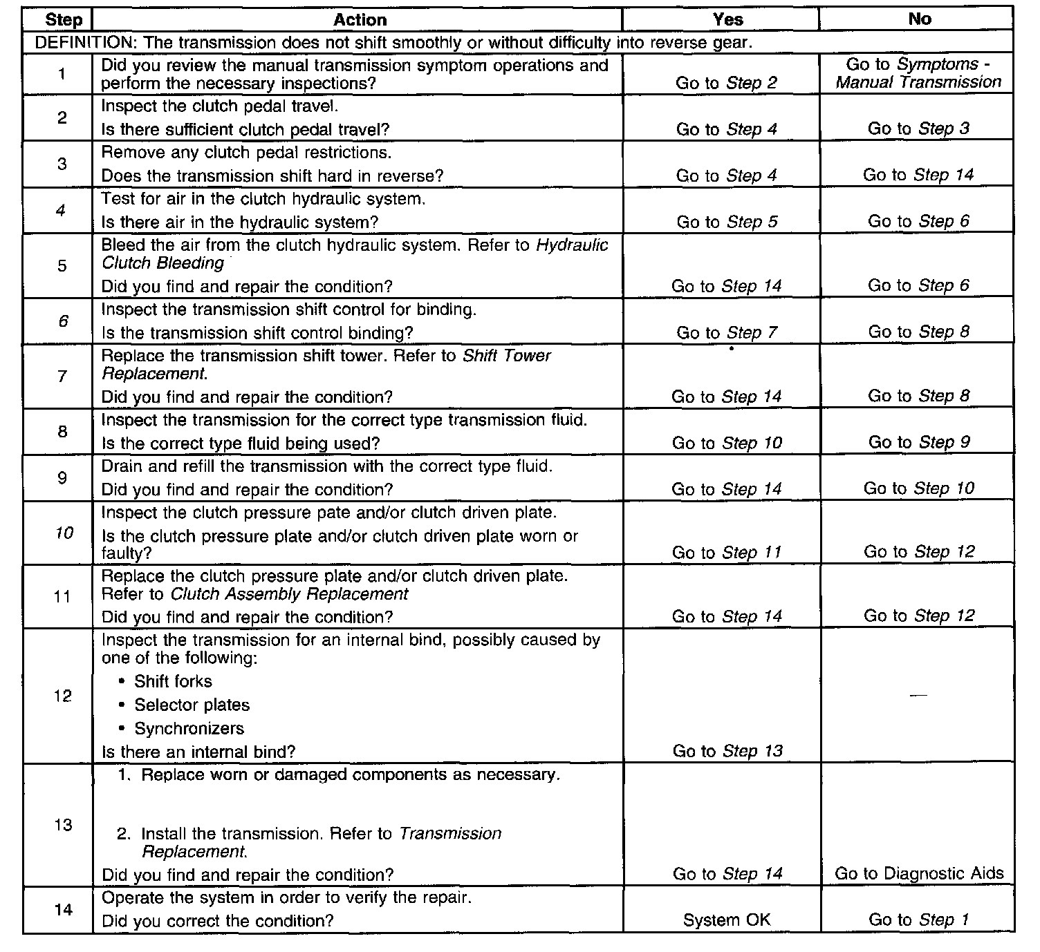 10. This step checks for a faulty or worn clutch pressure plate or clutch driven plate.