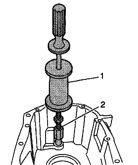 1. Using the J 36800 (2) and J 23907 (1), remove the shift shaft front housing bushing.
