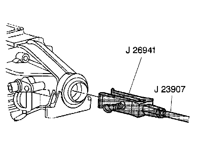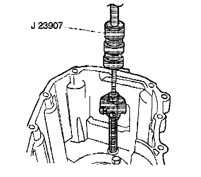 5. Using the J 23907, remove the rear case shift shaft bushing. The shift shaft bushing may come out without having to use the J 23907.