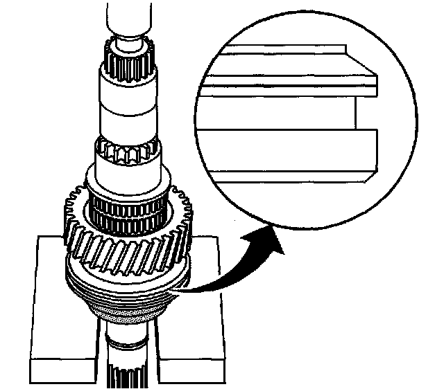 24.1. Manually align and engage the splines of the synchronizer hub with the main shaft splines.