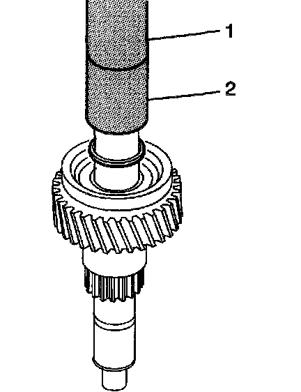 7. Using the J 39924-2 (2) and J 44339 (1), install the 5th speed gear drag seal.