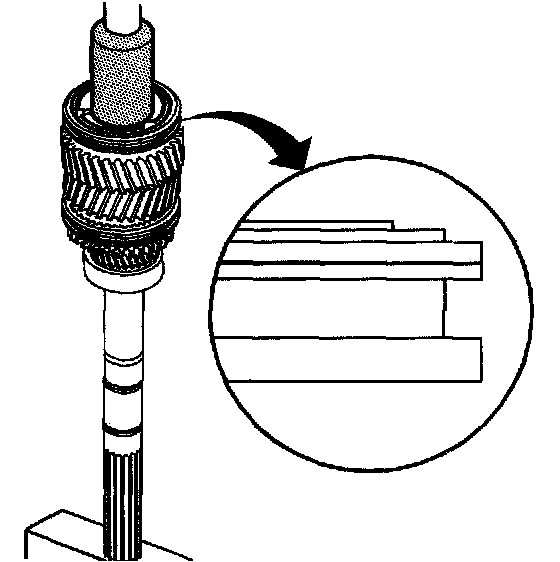 15.1. Manually align and engage the splines of the synchronizer hub with the main shaft splines.