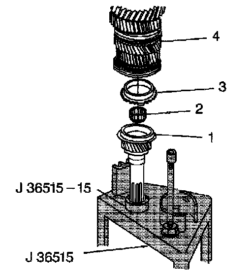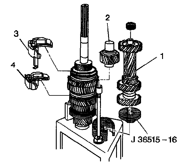 30. Install the following parts on the mainshaft and on the assembly fixture J 36515-16: