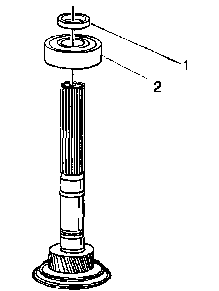 32. If RWD vehicle, install the main shaft rear bearing (2) on the main shaft.