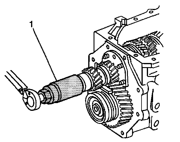 12. (4WD models) Using the J 38805 (1), remove the mainshaft nut and washer.