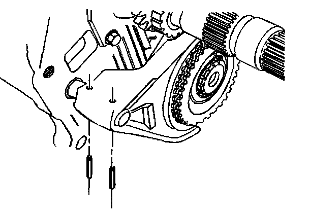 14. Remove the overdrive gear shift fork roll pins.