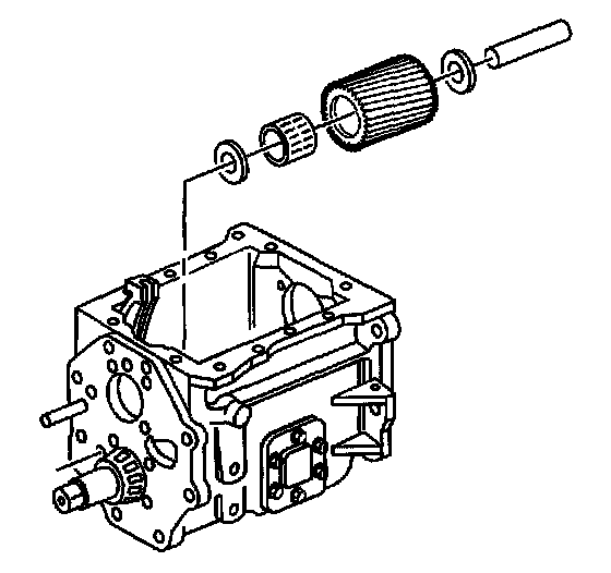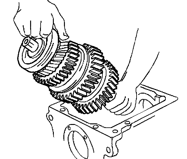 40. Remove the countershaft from the transmission case. Slide the countershaft rearward and lift the front of the countershaft and out of the case.