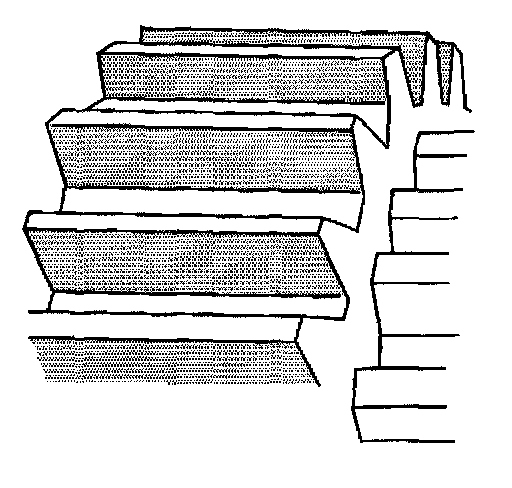 The tooth edges are worn and chipped and, in some cases, affected by plastic deformation as a result of high shift loads (ragged edges). Such severe deformation of the selector teeth edges will cause hard gear shift changes. The spline flanks may also show signs of wear resembling fretting corrosion.