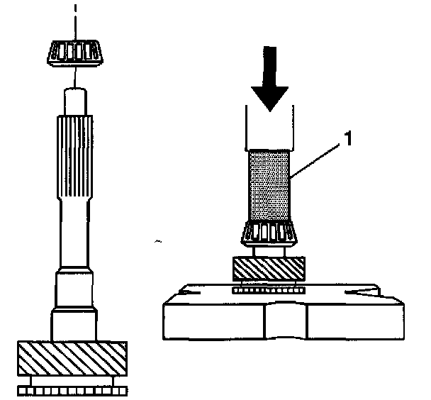 1. If removed install a new input shaft bearing cone using the J 22828 (1) onto the input shaft.