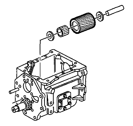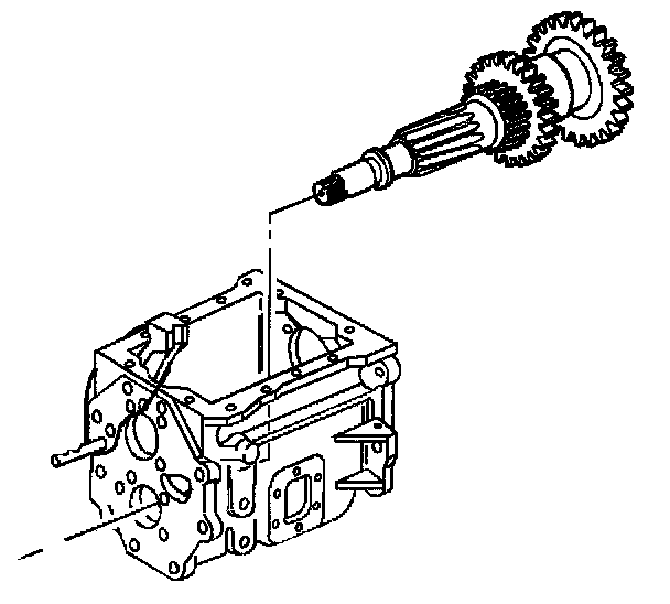 4. Install the countershaft assembly into the transmission case. Position the rear of the countershaft into the rear countershaft bearing bore than move the front of the countershaft into position.