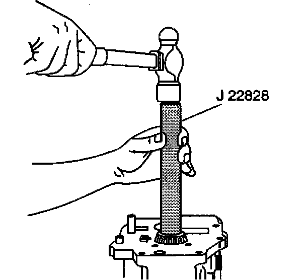 32. Using the J 22828 ensure the mainshaft overdrive gear is fully seated against the mainshaft rear bearing.