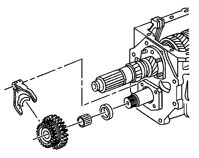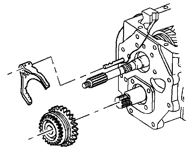 27. Install the overdrive speed gear assembly onto the overdrive speed shift shaft and the countershaft. Slide overdrive speed gear fork and the overdrive speed gear assembly onto the shift shaft.