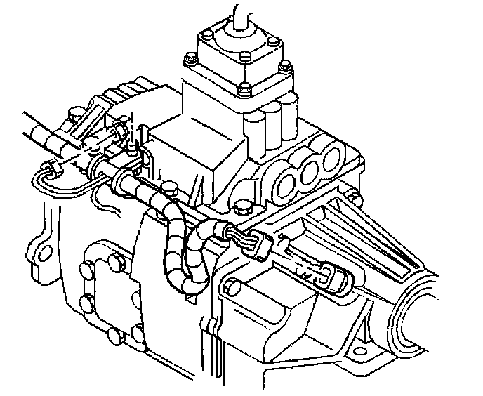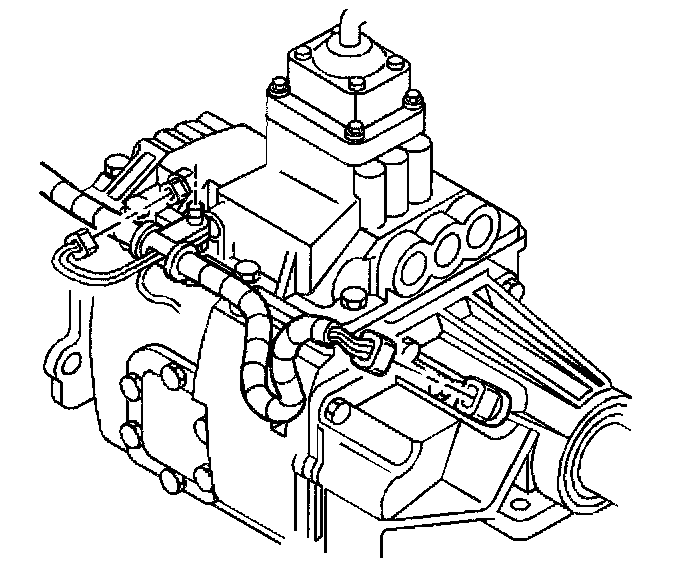 6. Connect the wiring harness and connector from the vehicle speed sensor, backup lamp switch, and transmission harness retainers.
