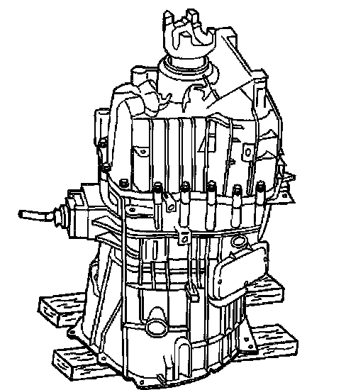 2. Position the transmission on the floor with the output shaft up. Use boards in order to allow for the protrusion of the input shaft.
