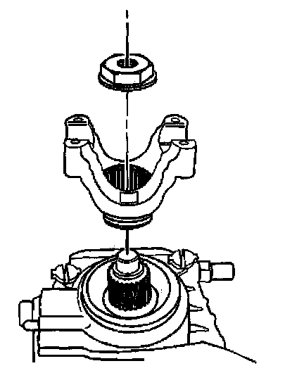 7. For RWD transmission remove the propeller shaft yoke nut and discard.