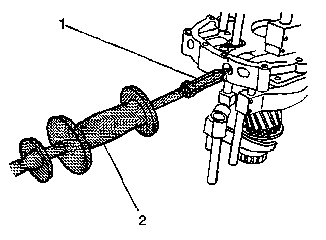 21. Using the J 36825 (1) and the J 23907 (2) remove the 4 shift shaft detent plugs.