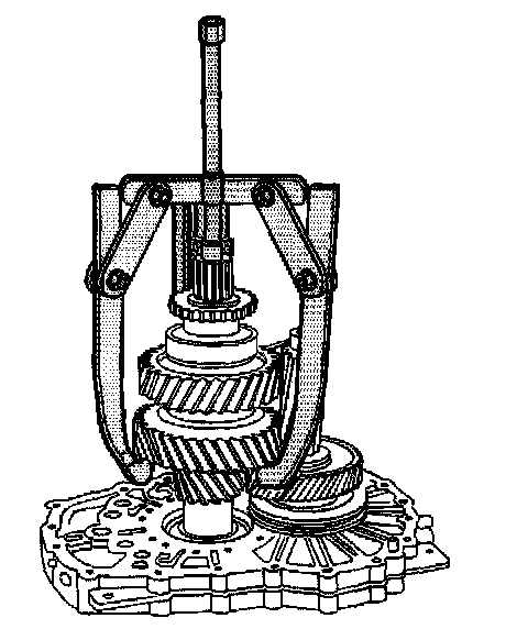 Important: You will be using the intermediate case to pull off the 6th gear synchronizer hub and the 6th gear bushing. Ensure the J 44730 is properly located on the intermediate case.