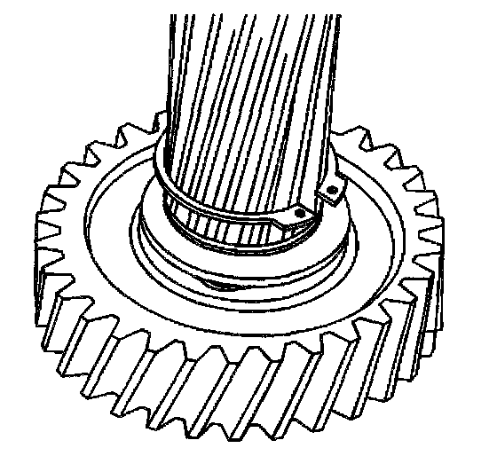 26. If the vehicle is 4WD remove the retaining ring for the main shaft rear bearing.