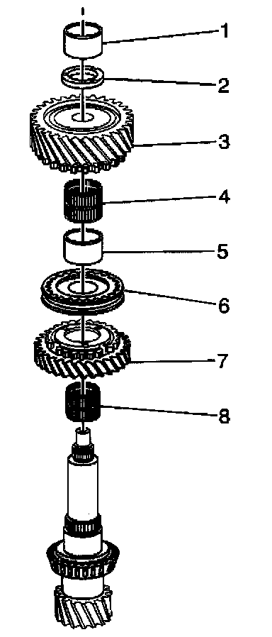 Important: The 3rd gear and 4th gear bearings and bushings are identical parts. Mark or tag the parts for proper installation. If reusing the parts install in the same location as removed.