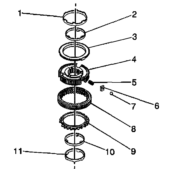 Important: When you service the synchronizers retain in order the components as removed. Keep the synchronizer components together and mark to identify correct location.