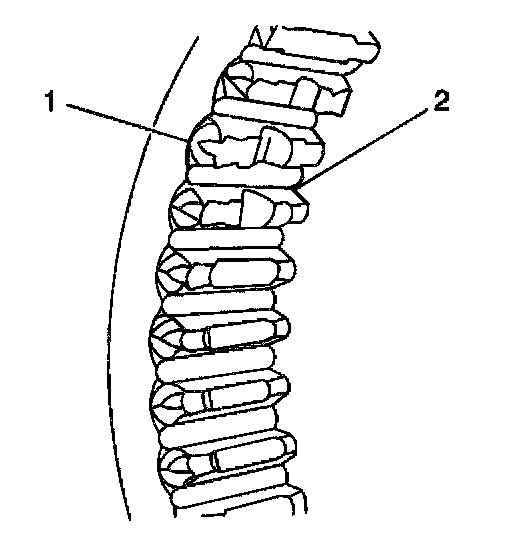 8. Inspect the synchronizer sleeve detent stops (2) for wear or being chipped off.