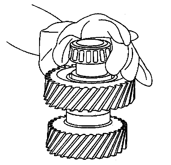 Countershaft AssembleNotice: Various transmission components require heating to 150°C (300°F) for 30 minutes for proper installation. Overheating may damage the components. Under-heating the components may cause hard installation, which may damage the components.