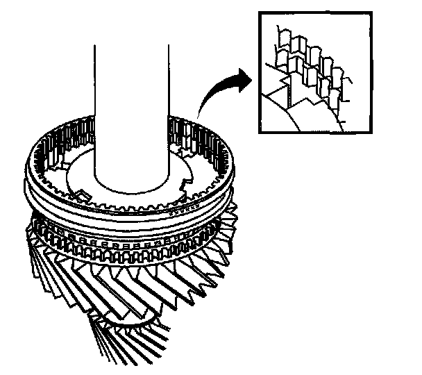 19. Perform the following in order to ensure the 2nd gear synchronizer rings are properly installed in the 2nd/3rd gear synchronizer hub: